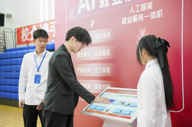 双选会现场,校长李长威介绍道:“这次双选会是学校应用型办学成果的集中体现。我们2025届毕业生的年终去向落实率和世界500强等高质量就业率都稳居省内前列。通过产教融合,让学生掌握真本领;通过特色服务,给孩子们的求职路保驾护航。”